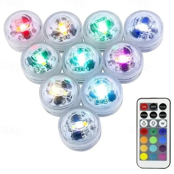 10pcs Submersible LED Lights Underwater Multicolor Lights Waterproof Remote Controlled RGB Swimming Pool Suitable for Tub Pond Vases Aquariums