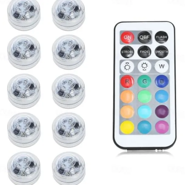 Quantity: 10pcs, LED Beads Quantity: 2, Light Color: RGB, Type: Underwater Lights, Features: Waterproof, Remote Controlled, Wattage (W): 1, Voltage (V): 2, Certification: RoHS, CE Certified, Lifetime (H): >50000, Fixture Material: ABS, Primary Application: Swimming pool, Suitable for Vases & Aquariums, Net Weight (kg): 0.014,