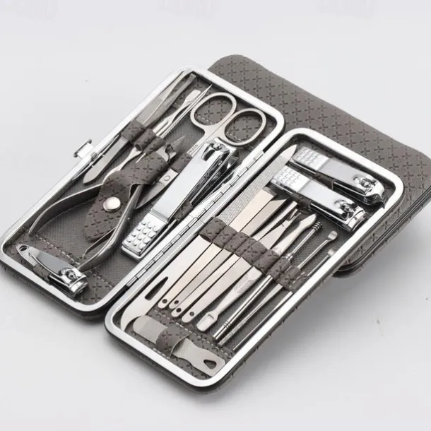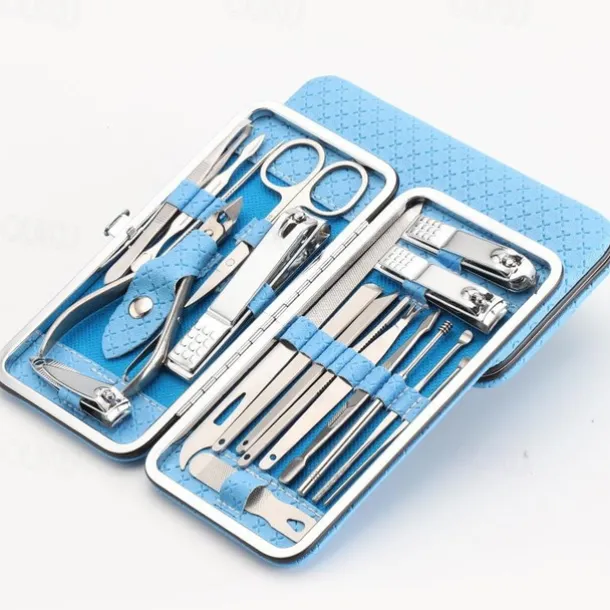 19 in 1 Stainless Steel Manicure Set For Foot Fitting Set Professional Pedicure Kit Nail Scissors Grooming Kit with Leather Travel Case for Women and Men
