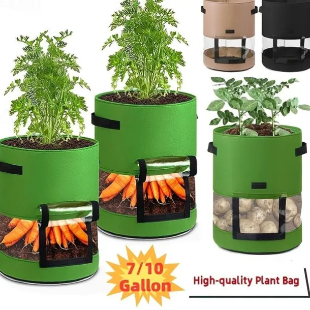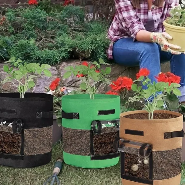 1pc Potato Grow Bag Vegetable Onion Home Garden Plant Bag With Handle PU Thickened Garden Carrot Taro Peanut Growing Bag Potato Pot