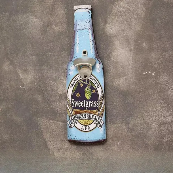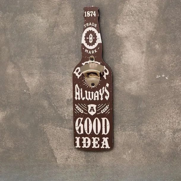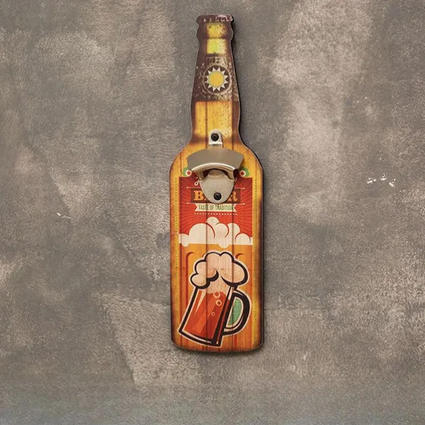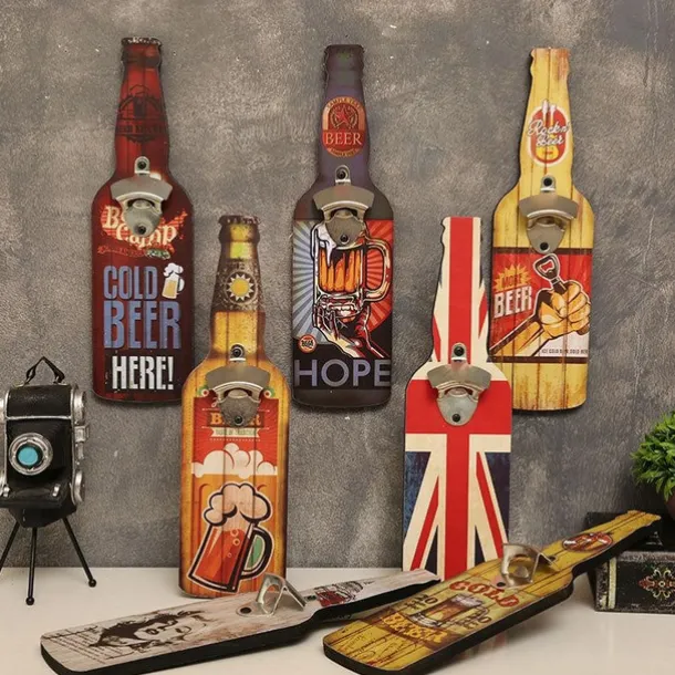 1pc Retro Wooden Bottle Opener Wall Mounted Hanging Beer Openers Bar Tools Alloy Electroplating Process Bar Cafe Wall Decoration 11x39cm/4.3”x15.4”