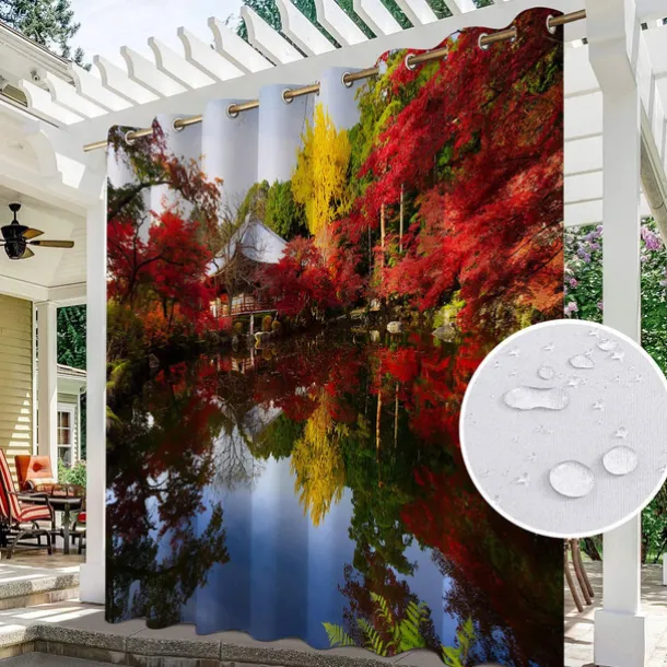 2 Panels Outdoor Curtain Privacy Waterproof, Sliding Patio Curtain Drapes, Pergola Curtains Grommet 3D Landscape For Gazebo, Balcony, Porch, Party, Hotel