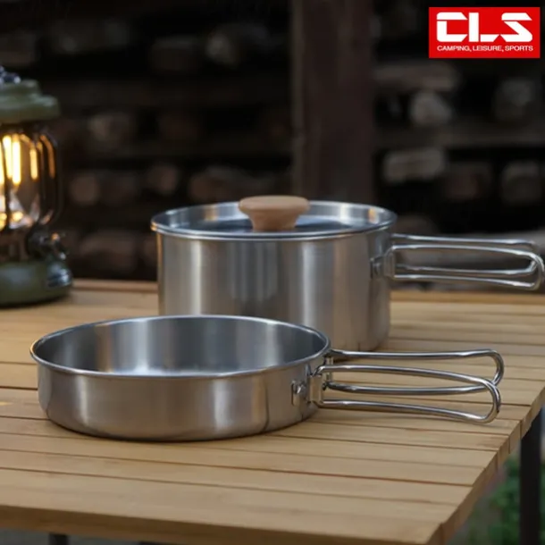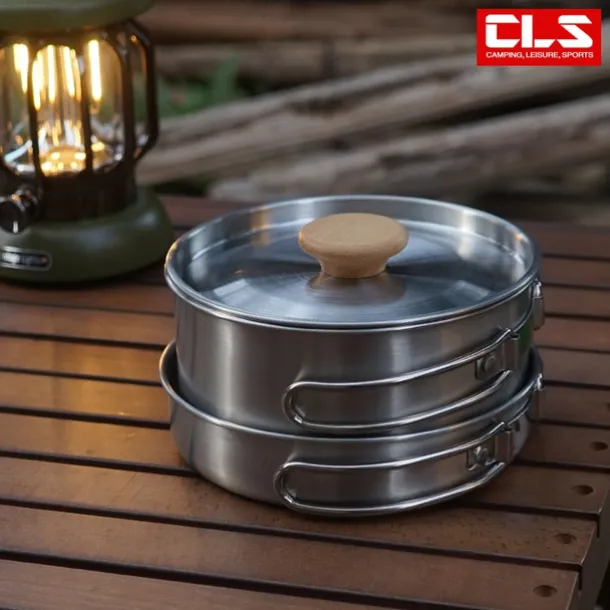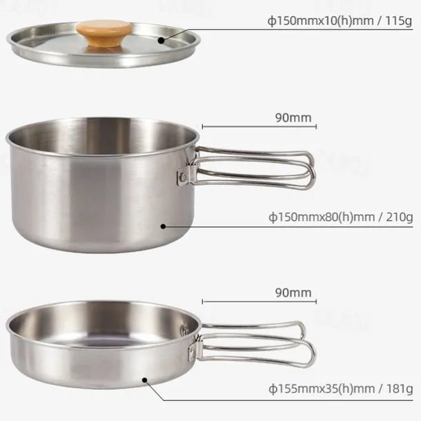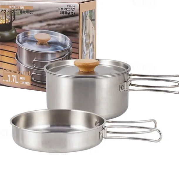 2Pcs of Set Outdoor Mountaineering 304 Stainless Steel Folding Handle Pot Durable Portable Lightweight Camp Cooking Pot for Hiking Backpacking Camping Gear Easy to Store and Carry