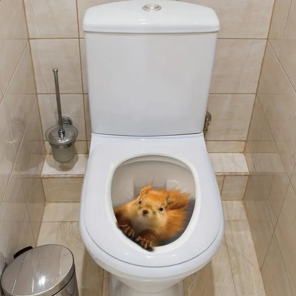 3D Three-dimensional Squirrel Toilet Lid Decal, Removable Self Adhesive Wall Sticker, Creative Toilet Cover Decorative Sticker, Bathroom Decor asethetic room decor, home decor