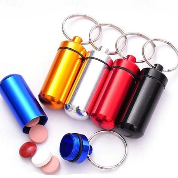 3Pcs Mini Portable Travel Pill Case Waterproof Container Keychain Tools Capsule Bottles Key Ring Chain Pill Holder Medicine Boxes Random Color