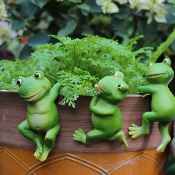 3pcs/set Cute Frog Figurines Hanging Animal Statue, Resin Pot Hanging Climbing Frog Sculpture Outdoor Statues Ornaments Decor For Flower Pot/Fence, Yard Art Figurines For Patio Lawn House