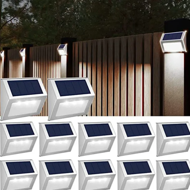 6/12pcs Outdoor Wall Lights Solar Step Fence Lights Stair Waterproof Garden Patio Outdoor Wall Lights Solar Waterproof Lighting Decoration Lamp