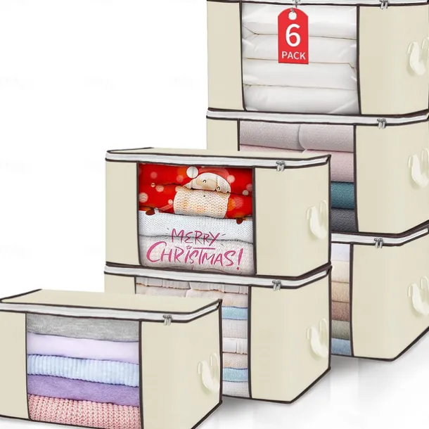 – Large capacity: Each set includes 6 sweater storage bags, measuring 60 x 35 x 40 cm / 23.6 x 13.8 x 15.7 in. The spacious 90L capacity is ideal for storing quilts, blankets, pillows, toys, jackets, and more.
