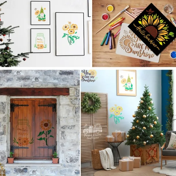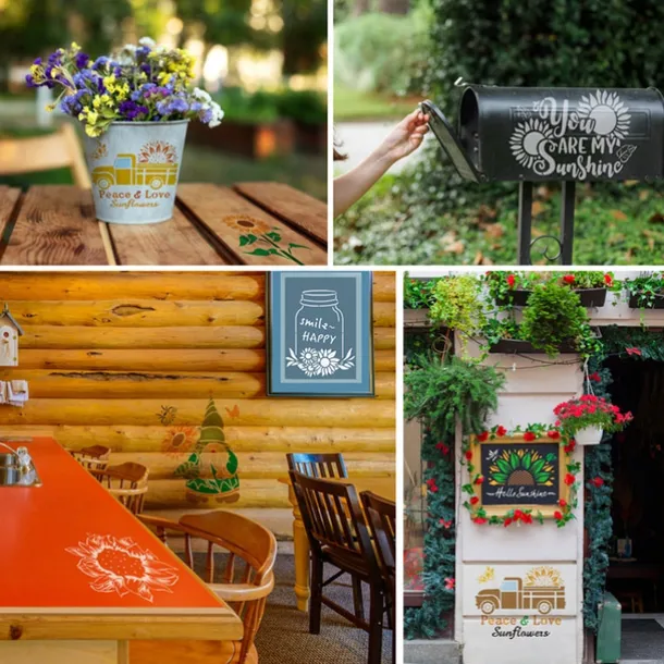 9pcs Sunflowers Painting Stencils Reusable Stencils Wall Stencils DIY Craft Stencils (Flower Theme)