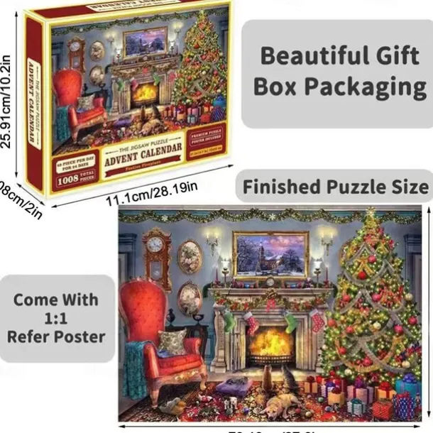 – Elaborate Packaging: Our advent calendar for 2023 includes 24 boxes with 42 puzzle pieces in each box, for a total of 1008 pieces. Each Christmas puzzle has a corresponding number on the back. Additionally, the calendar includes a poster with puzzles of the same size (27.5×19.7in). This allows you to complete a small part of the puzzle each day between December 1st and 24th.