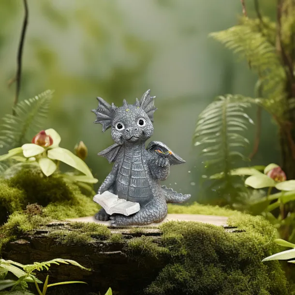 Baby Dragon Reading Book Statue Dragon Sculpture Garden Statue Sculptures for Outdoor Garden Backyard Porch Decoration