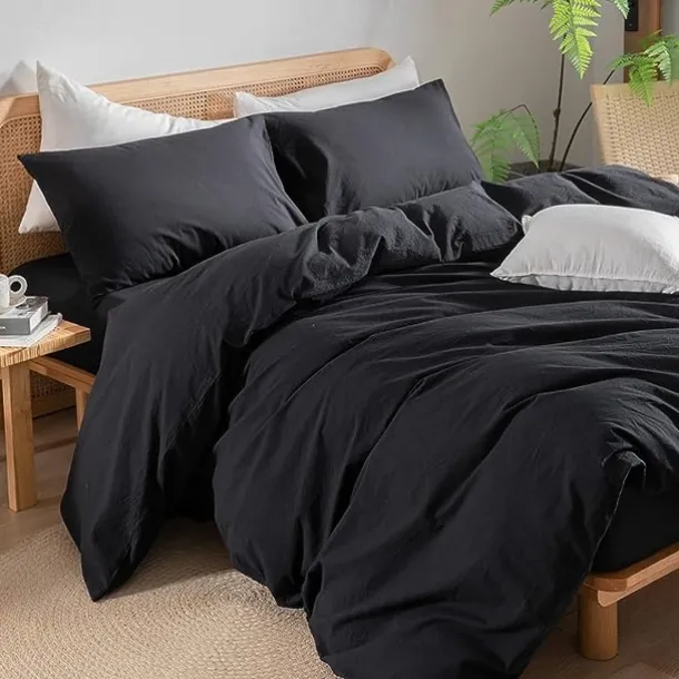 Option 2: Crafted from 100% premium polyester microfiber fabric with double-brushed process,ULTRA SOFT,BREATHABLE,SKIN FRIENDLY,wrinkle and fade resistance.For households or other places that frequently change duvet covers, polyester is a more cost-effective choice.