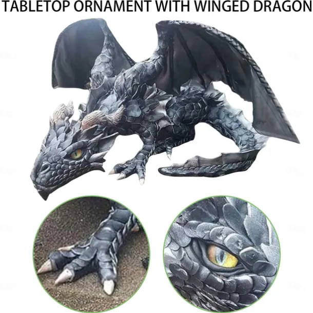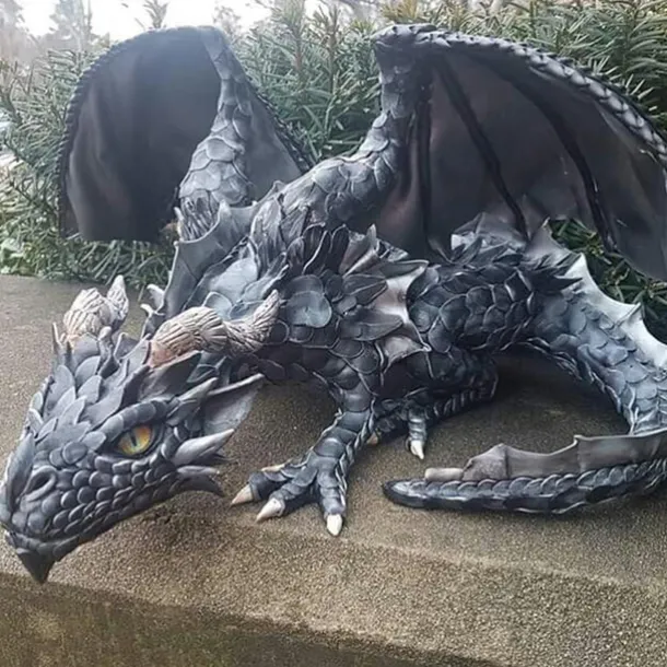 Big Squatting Dragon Sculpture, Resin Gothic Dragon Statue, Handicraft, Outdoor Decoration