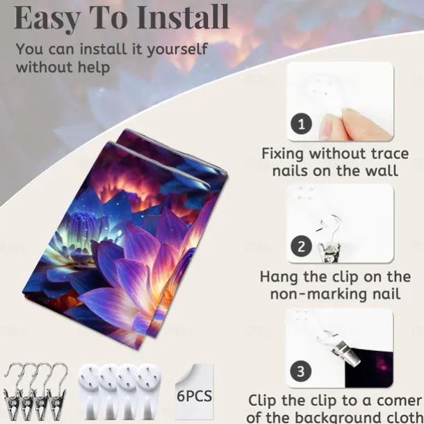 Blacklight Tapestry UV Reactive Glow in the Dark Glow Party Neon Lotus Flower Nature Psychedelic Trippy Misty Hanging Tapestry Wall Art Mural for Living