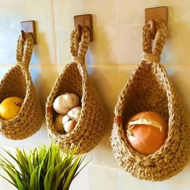 Bohemian Style Woven Wall Hanging Basket – Creative Teardrop Shape for Kitchen Storage of Fruits & Vegetables