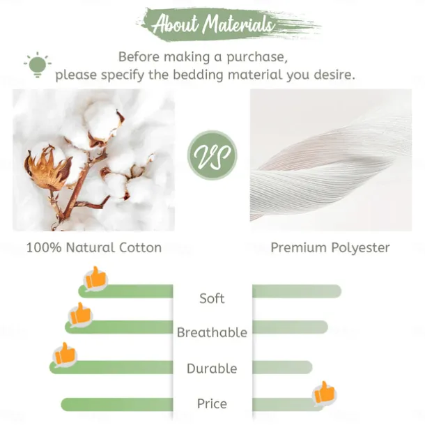 Option 2: Crafted from 100% premium polyester microfiber fabric with double-brushed process,ULTRA SOFT,BREATHABLE,SKIN FRIENDLY,wrinkle and fade resistance.For households or other places that frequently change duvet covers, polyester is a more cost-effective choice.