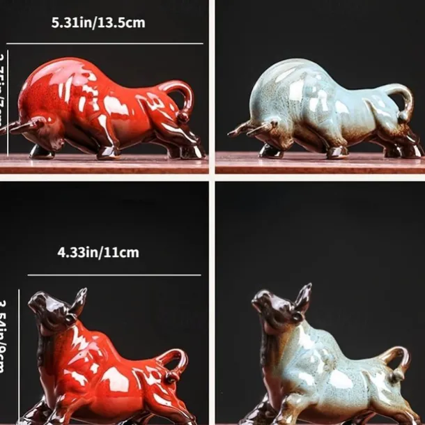 Chinese Feng Shui Ceramic Bull Figurine – Prosperity Attracting Wealth Buffalo Statue, Office Desk Decor, Zodiac Animal Handicraft, Non-Electric Collectible