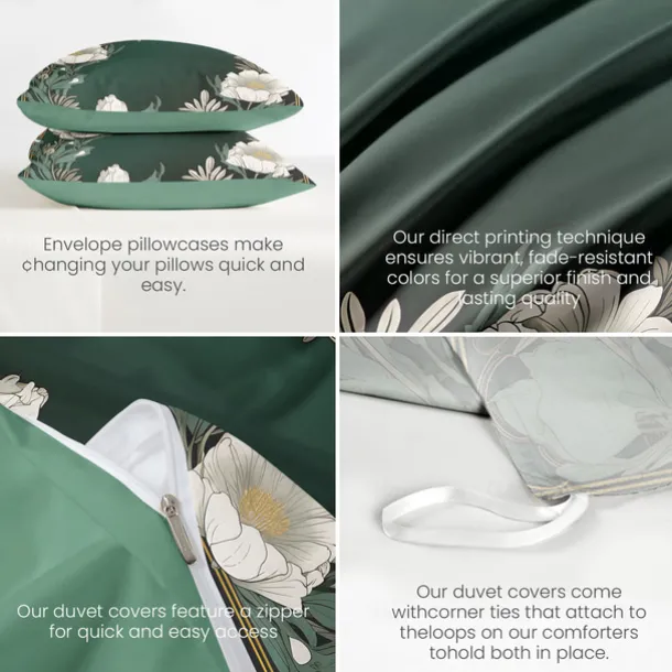 Option 1:Made from 100% natural cotton, features soft, breathable and lightweight.High-density weave with 200-thread count,will get MORE COMFORTABLE AND DURABLE.The cotton duvet cover set is suitable for all seasons to provide the premium sleeping experience for your family.