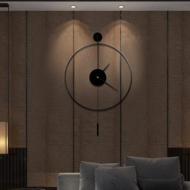 Classical Large Wall Clock with Pendulum Decorative Art Clocks Round Minimalist Modern Clock Non Ticking Silent Metal Wall Clock for Living Room Bedroom Study Office Decoration 50 60 cm