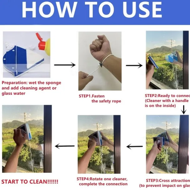 Double Side Window Cleaner Magnetic Window Glass Wiper Cleaning Tool for High-Rise Household Cleaning Cleaning Windows Thickness 3-8mm Window Cleaner Double Side Glass Wiper Adjustable Magnetic