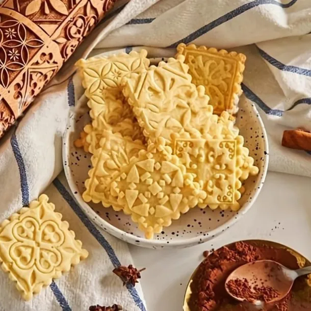 Embossing Rolling Pin (13.77”x1.77”), Wooden Rolling Pin, Square Flower Pattern Dough Roller, For Pizza, Pie, Cookies, Dumplings, Noodles, And More, Kitchen Utensils, Kitchen Gadgets, Kitchen Accessories, Home Kitchen Items