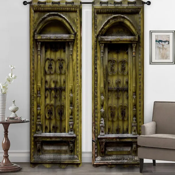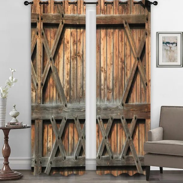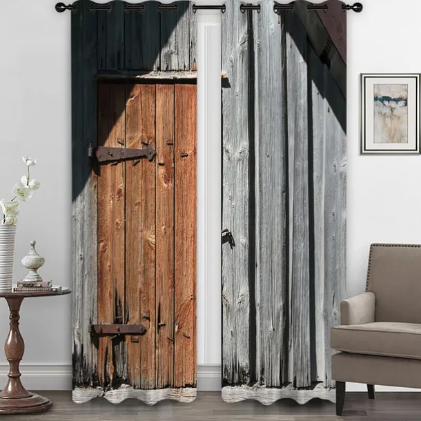 Farmhouse Curtain 2 Panels,Barn Wood Door Curtain Drapes For Living Room Bedroom,Grommet/Eyelet Curtain for Kitchen Door Window Treatments Room Darkening