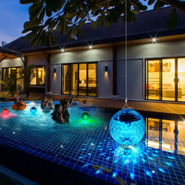 Floating Pool Lights Solar Pool Lights with RGB Color Changing Waterproof Pool Lights that Float for Swimming Pool at Night Hangable LED Disco Glow Ball Lights for Pond Garden Backyard
