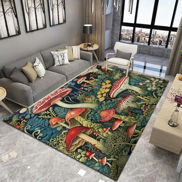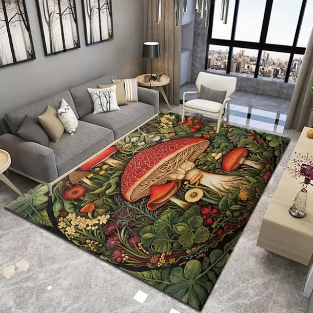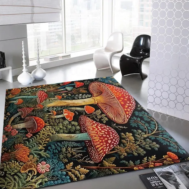 Floral Mushrooms Floor Mat Rug Area Rug Black Carpet Illusion Flannel Rugs Ultra Soft Non-Slip Rug for Room Deco