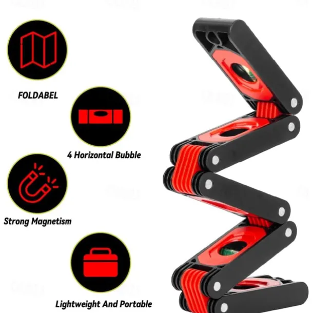 Foldable Multi-Angle Measuring Tool, Magnetic Level Ruler for Woodworking, Precise 45 90 Vertical Measurements, Compact & Space-Saving Design