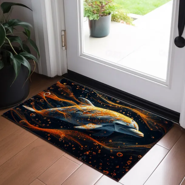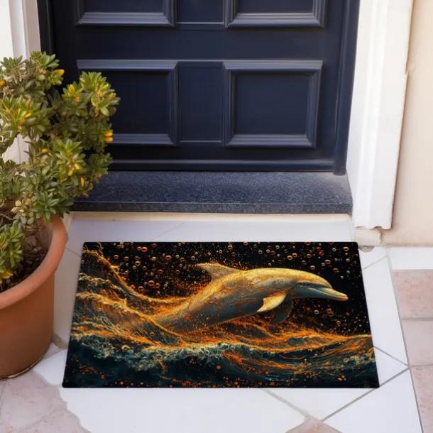 Gold Dolphin Doormat Non-Slip Oil Proof Rug Indoor Outdoor Mat Bedroom Decor Bathroom Mat Entrance Rug Door Mat