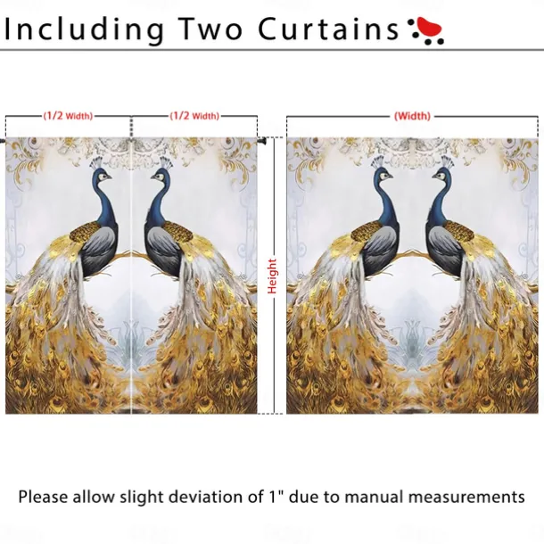 Golden Rose Peacock Insulated Outdoor Balcony Rest Living Room Home Decoration 2-piece Set 3D Digital Printing Perforated Shade Curtains