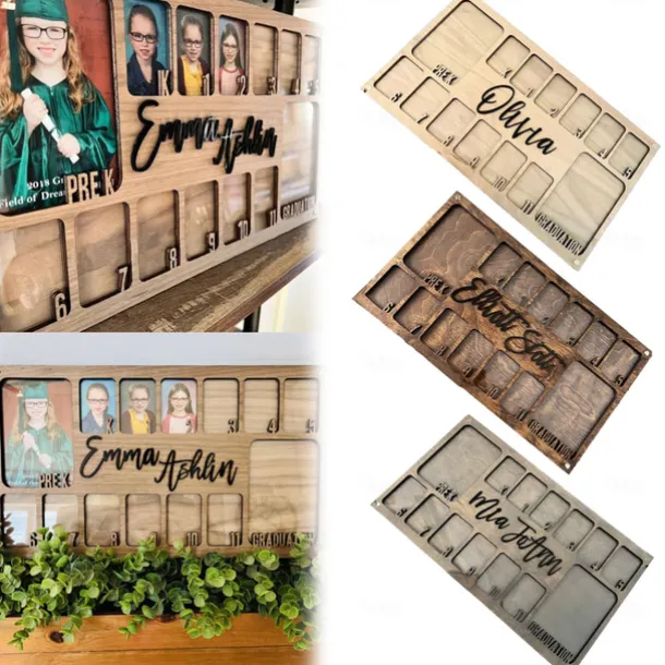 Graduation School Picture Frame, Pre-K to 12, Wooden Photo Frame for School Years (K-12), 14 Photo Slots, Ideal Graduation Gifts & Party Decor for Children and Classmates