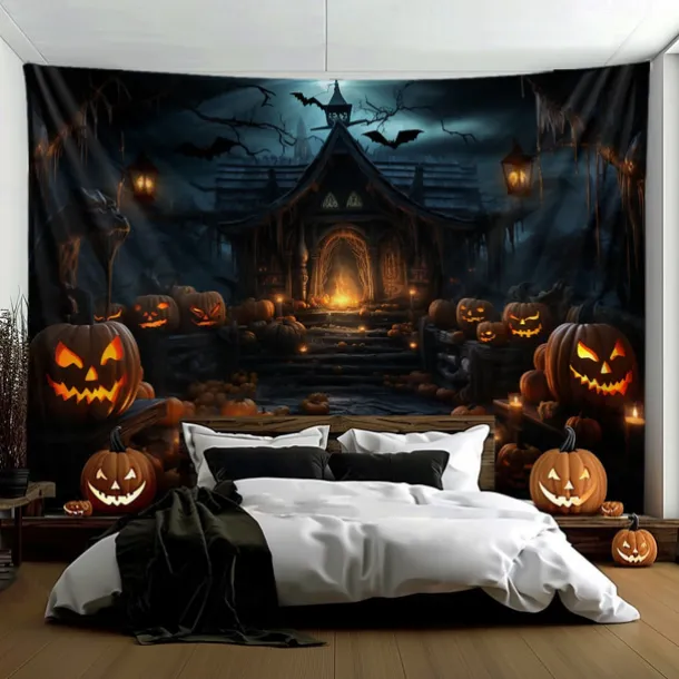 Halloween Decorations Hanging Tapestry Evil Pumpkins Jack O Lantern Wall Art Large Tapestry Mural Decor Photograph Backdrop Blanket Curtain Home Bedroom Living Room