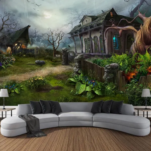 Halloween Decorations Tapestry Jack O Lantern Pumpkin Decor Wall Art Large Hanging Tapestry Mural Decor Photograph Backdrop Blanket Curtain Home Bedroom Living Room Bat Haunted House Graveyard