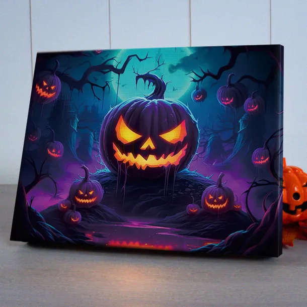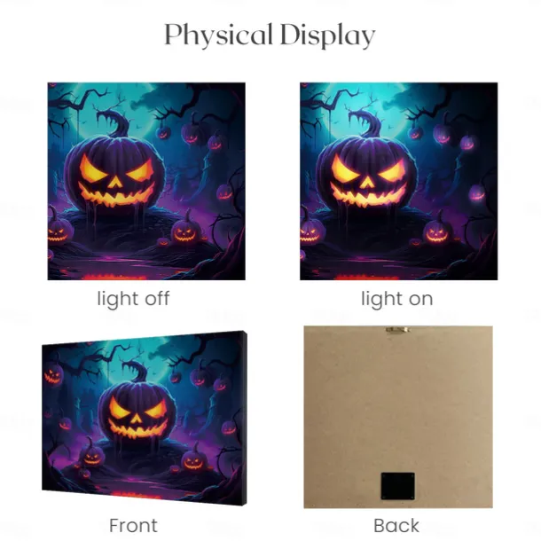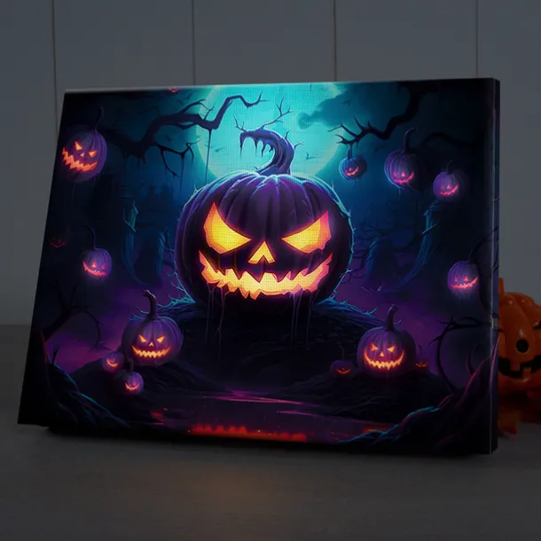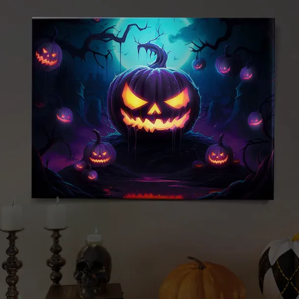 Halloween Glowing Pumpkin Face LED Canvas Wall Art – Battery Operated Lighted Wall Decor for 2025 Halloween home decoration light livingroom and bedroom