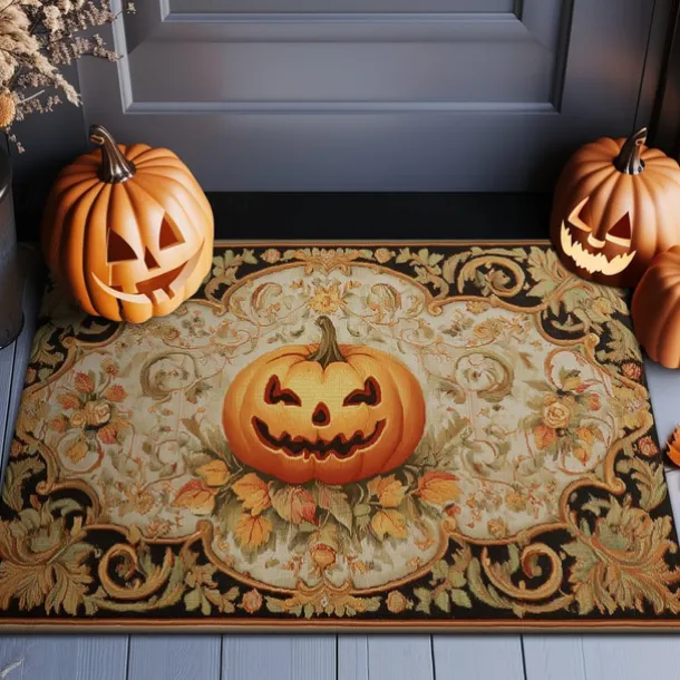 Halloween Indoor Outdoor Doormat Kitchen Mat Pumpkin Face with Ornamental Frame Design, Non-Slip Front Door Mat for Porch, Entryway, Patio, Bedroom, Bathroom and 2025 Halloween Home Decoration