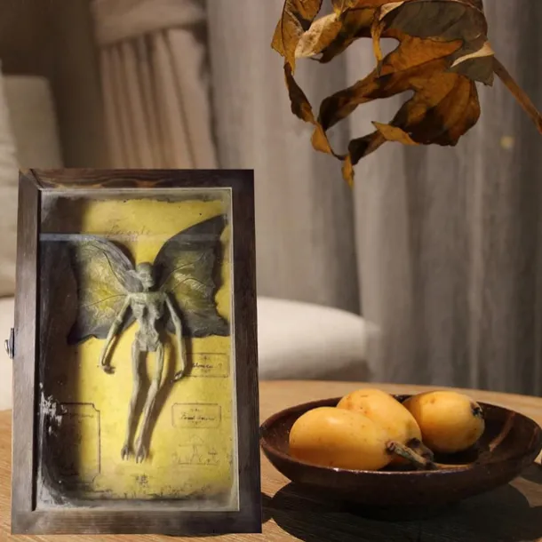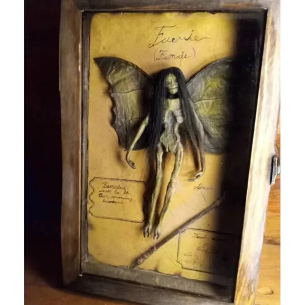 Halloween Mummified Fairy Display Box Solid Mdf Rectangle Distressed Wooden Hard Gift Durable Scary Mummy Skeleton With Wing Decoration Living Room Supplies