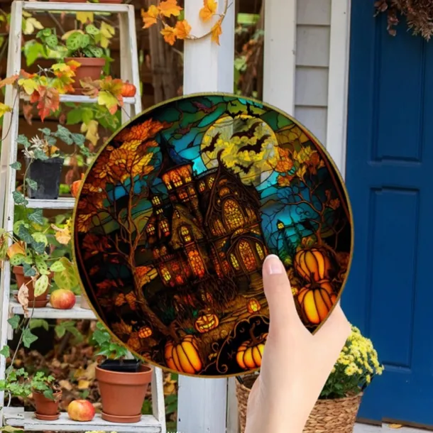 Halloween Pumpkin Crow Castle Acrylic Hanger Window Home Decoration Hanger