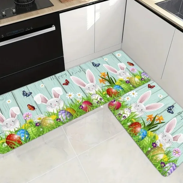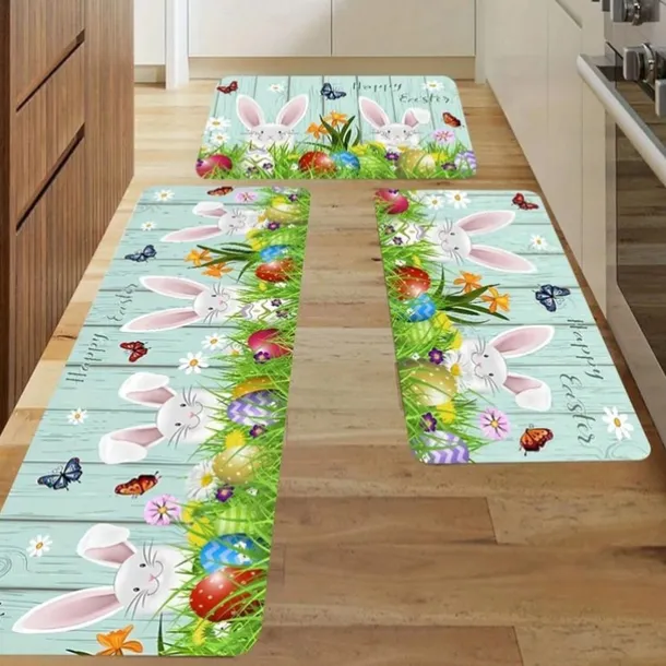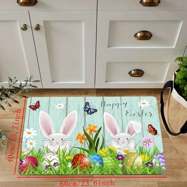 Happy Easter Bunny Area Rug Kitchen Mat Non-Slip Oil Proof Floor Mat Livingroom Rug Indoor Outdoor Mat Bedroom Decor Bathroom Mat Entrance Rug Door Mat