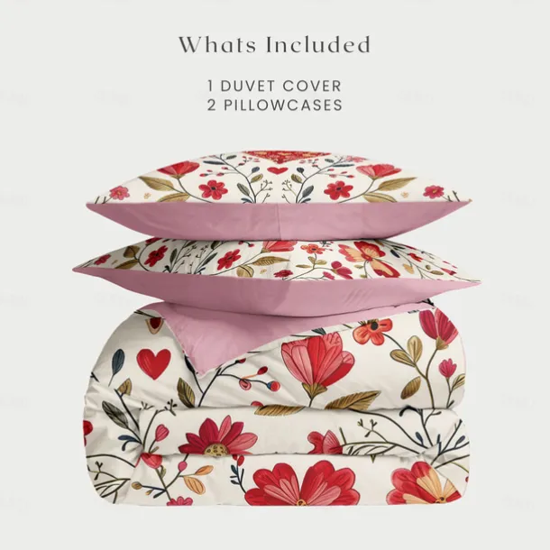 Heart Pattern Duvet Cover Set Set Soft 3-Piece Luxury Cotton Bedding Set Home Decor Gift Twin Full King Queen Size Duvet Cover