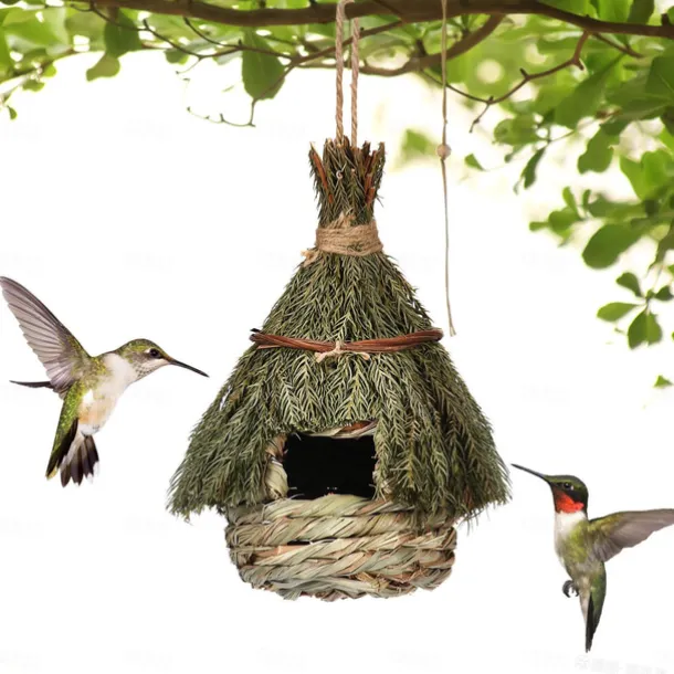 Hummingbird House for Outside,Hand Woven Straw Bird Nest | Small able Natural Grass Birdhouse Birds Roosting Pocket, for Garden Window Patio Home Decoration