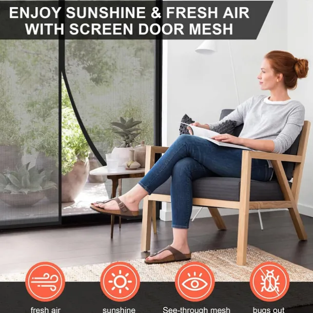 Magnetic Screen Door Portable, Fly Or Bug Screen Magnetic, Doorway Mosquito Net For Sliding Door,Garage,Patio,Kitchen,Living,Window Room,Bedroom,Bar,Pet and Kid Easy Entry