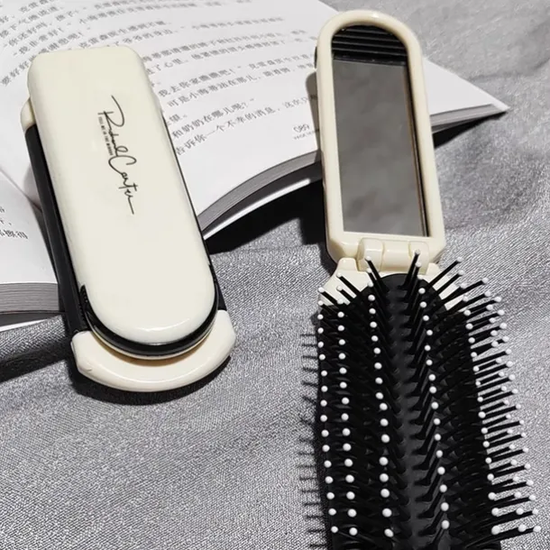 Mini Folding Hair Brush with Mirror – Portable Anti-Static Massage Comb for Travel, Head Massage, and Female Hair Care