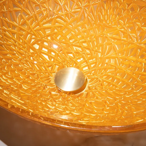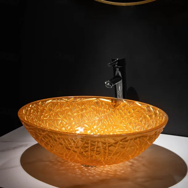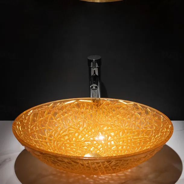 Modern Luxury Art Orange Oval Die Cast Glass Wash Basin With Faucet, Basin Holder And Drain