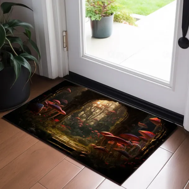 Mushroom Forest Trippy Doormat Floor Mats Washable Rugs Kitchen Mat Non-Slip Oil Proof Rug Indoor Outdoor Mat Bedroom Decor Bathroom Mat Entrance Rug