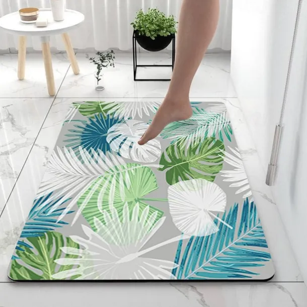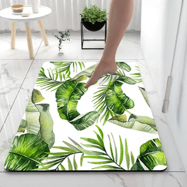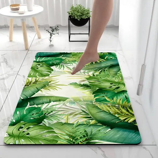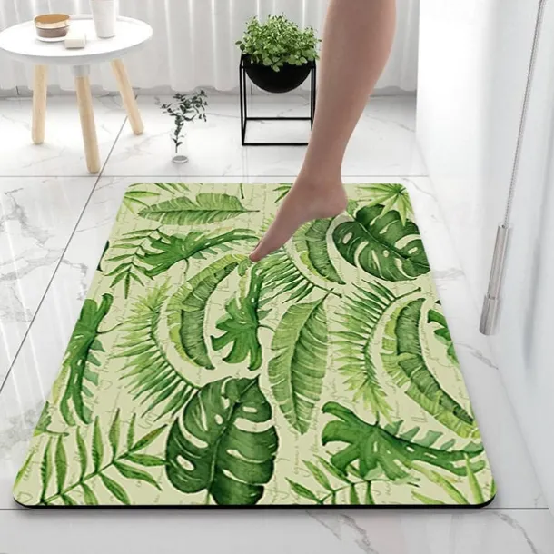 Nordic Green Leaf Bathroom Bath Mat Non-slip Creative Absorbent Bathroom Rug Diatomaceous Earth Non Slip