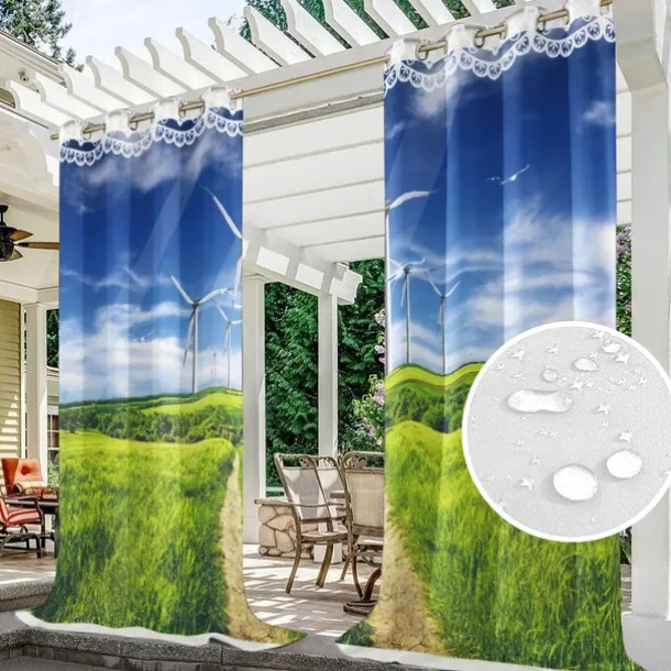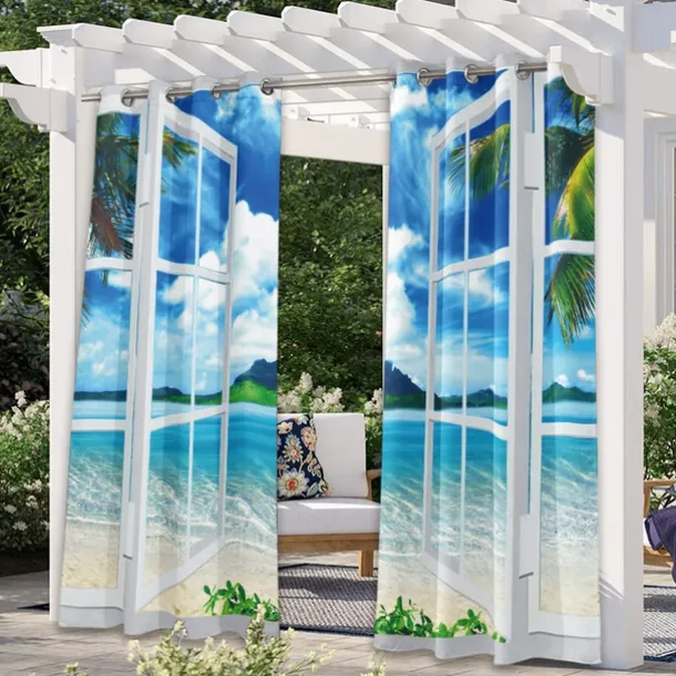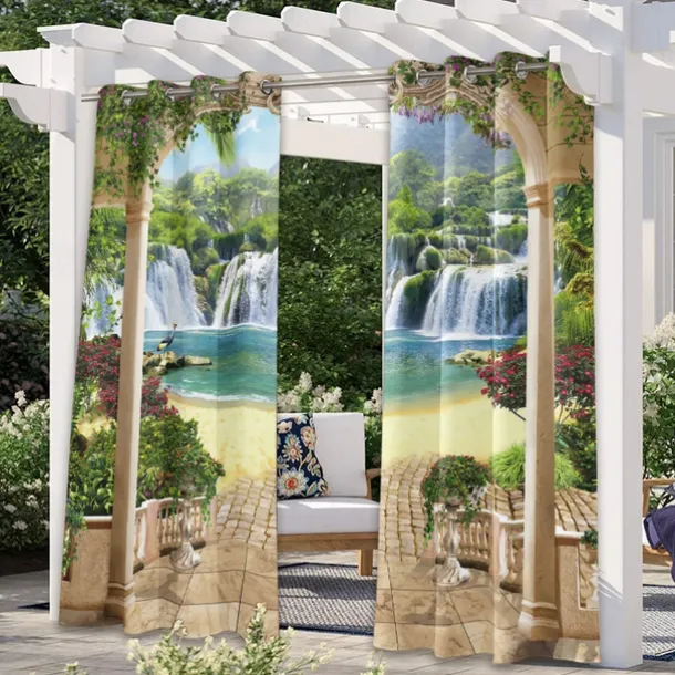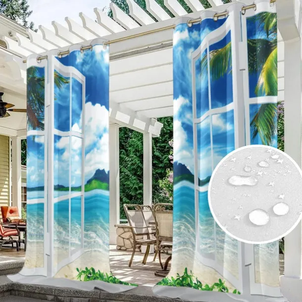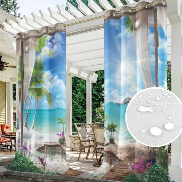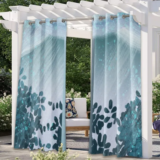 Outdoor Curtains Waterproof Windproof Weatherproof Curtain for Patio, Cabana, Porch, Pergola and Gazebo, Grommet Top Drape, 2 Panels Garden Theme