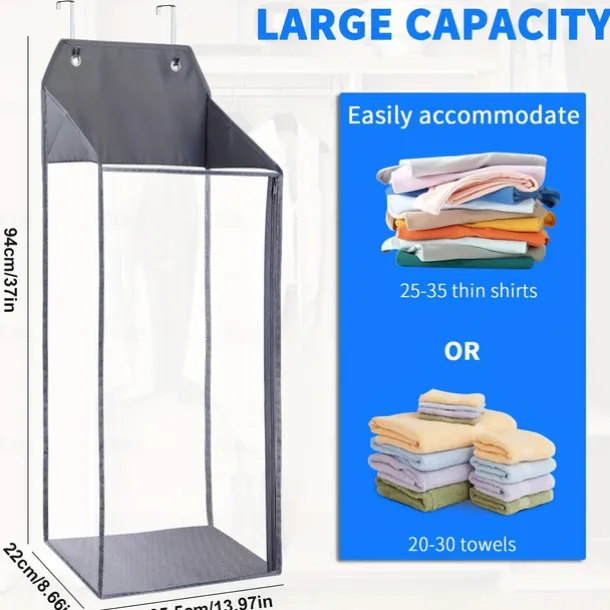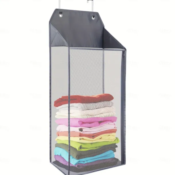 Over the Door Laundry Hamper,Collapsible Hanging Mesh Laundry Hamper Basket with Zipper for Dirty Clothes Organizer,Space Saving Laundry Bag for Bathroom, Bedroom