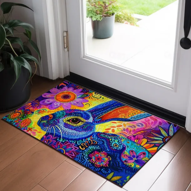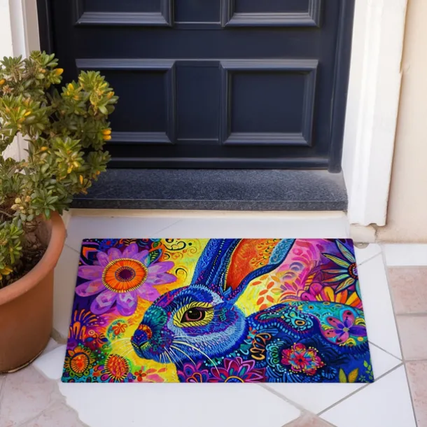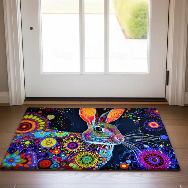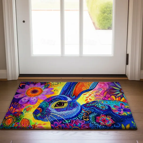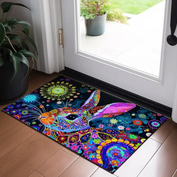 Painting Rabbit Easter Doormat Floor Mats Washable Rugs Kitchen Mat Non-Slip Oil Proof Rug Indoor Outdoor Mat Bedroom Decor Bathroom Mat Entrance Rug