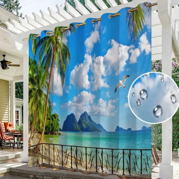 Patio Outdoor Curtains 2 Panels Grommet Top Waterproof Outdoor Blackout UV Sun Curtains Drapes for Porch Pergola Gezebo Cabana Sun Room Deck